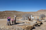 La fibra proviene de llamas criadas en el territorio, esquiladas de manera responsable y trabajadas sin procesos industriales. Cada etapa —desde el cuidado del animal hasta el tejido final— se realiza en comunidad.